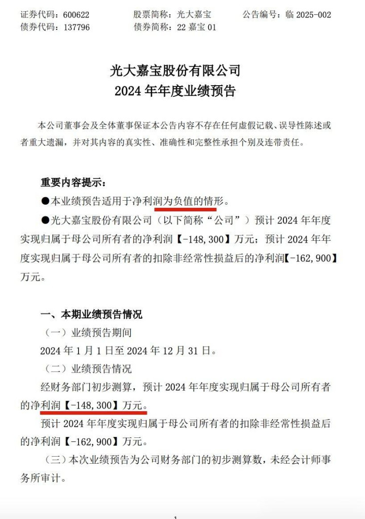 根据公告,光大嘉宝表示,预计2024年归属于母公司所有者的净利润为-148300万元,较上年同期的-199676.97万元有所改善。扣除非经常性损益后的净利润为-162900万元,相比上年同期的-200724.77万元亦有所提升。